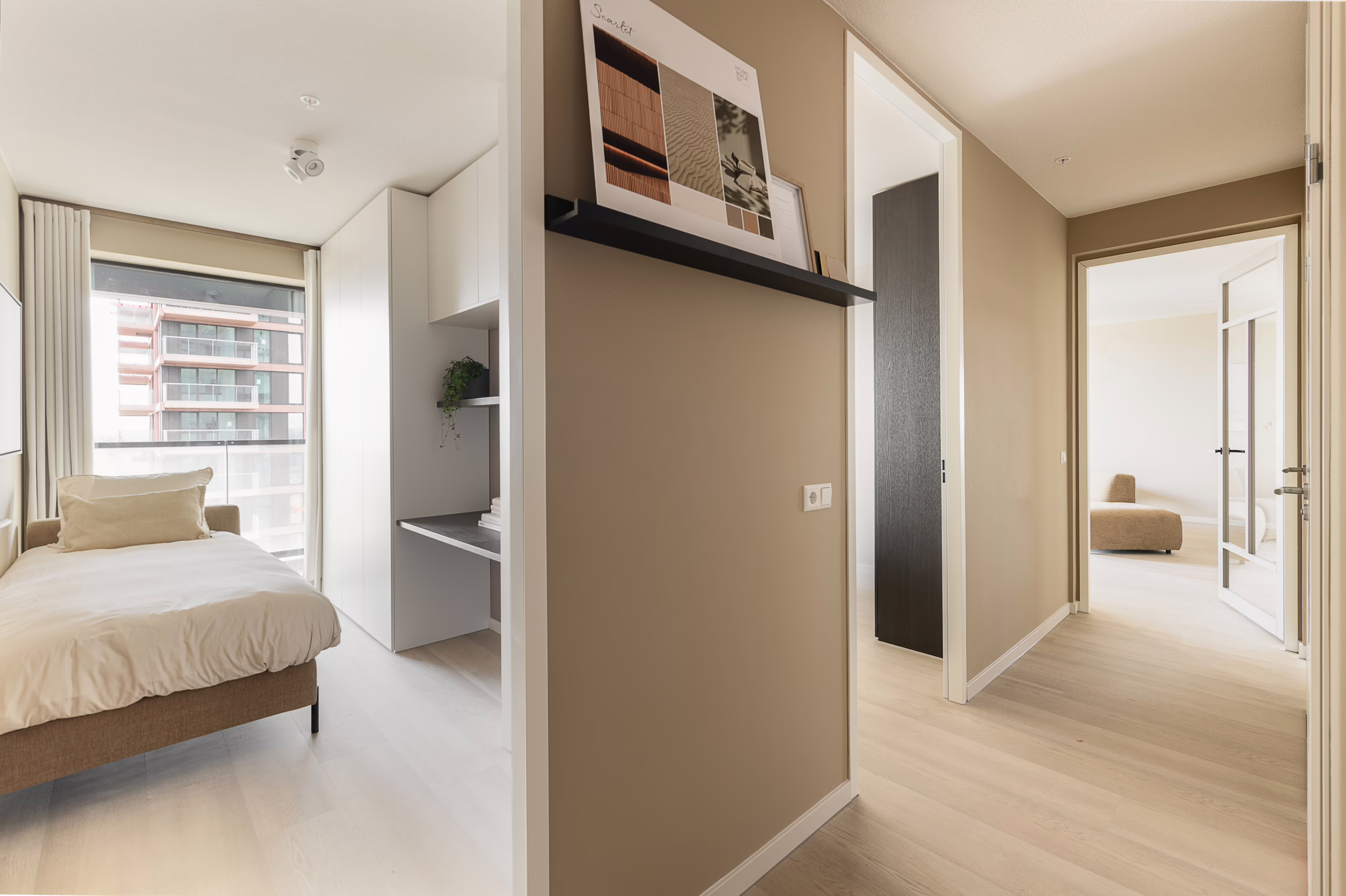 In Scarlet is de modelwoning D 15.05 te vinden, op de 15e verdieping. Met twee slaapkamers en ca. 88 m² woonoppervlak biedt dit appartement alle ruimte om te leven. Zodra je binnenstapt, voel je je thuis in de luxe afwerking en warme inrichting. En het uitzicht? Spectaculair. ’s Ochtends drink je je eerste koffie in de zon, hoog boven de stad.
